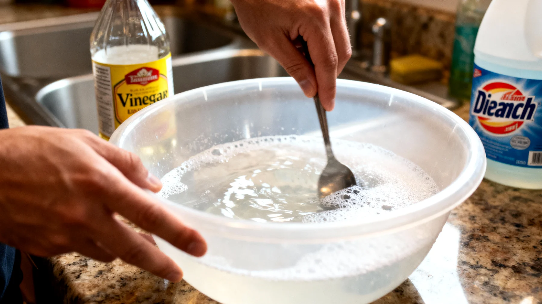 La versatilità dell’aceto può trarre in inganno. C’è molta disinformazione sulle interazioni chimiche negative che possono verificarsi quando viene mescolato ad altri detergenti comuni. La più rischiosa di tutte è la combinazione con la candeggina a base di ipoclorito di sodio. La combinazione con la candeggina libera cloro gassoso, un composto altamente tossico per le vie respiratorie. Il cloro gassoso, anche a basse concentrazioni, può causare irritazioni oculari immediate, tosse e difficoltà respiratorie.